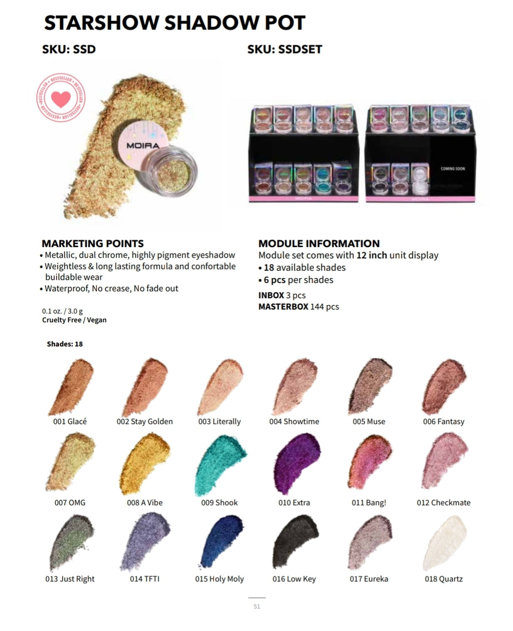 MOIRA Starshow Shadow Pot #SSDSET w/ Display | 108pc Display