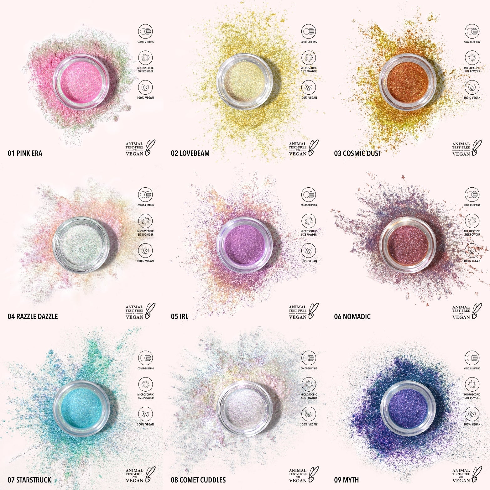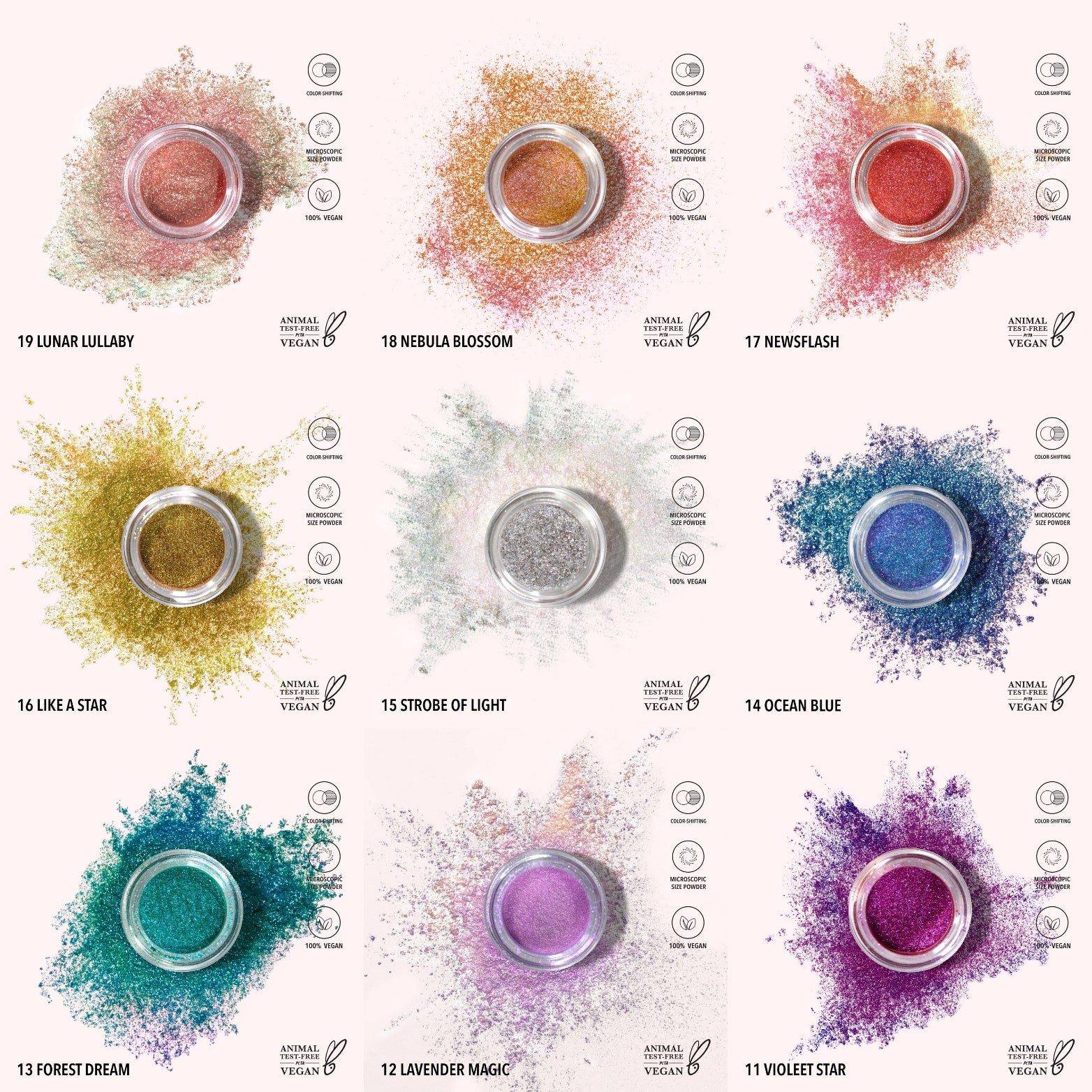6pcs x shade <2.50 each> 19 colors + 6pcs glitter primer